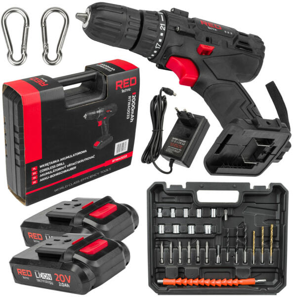 Red Technic Akkus Csavarhúzó LCD Fúrógép 2x Aku 20V Koffer Nagy Készlet 37Nm (RTWA0033)